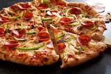 Pepperoni, sausage, bell peppers, onions, mushrooms & extra cheese.